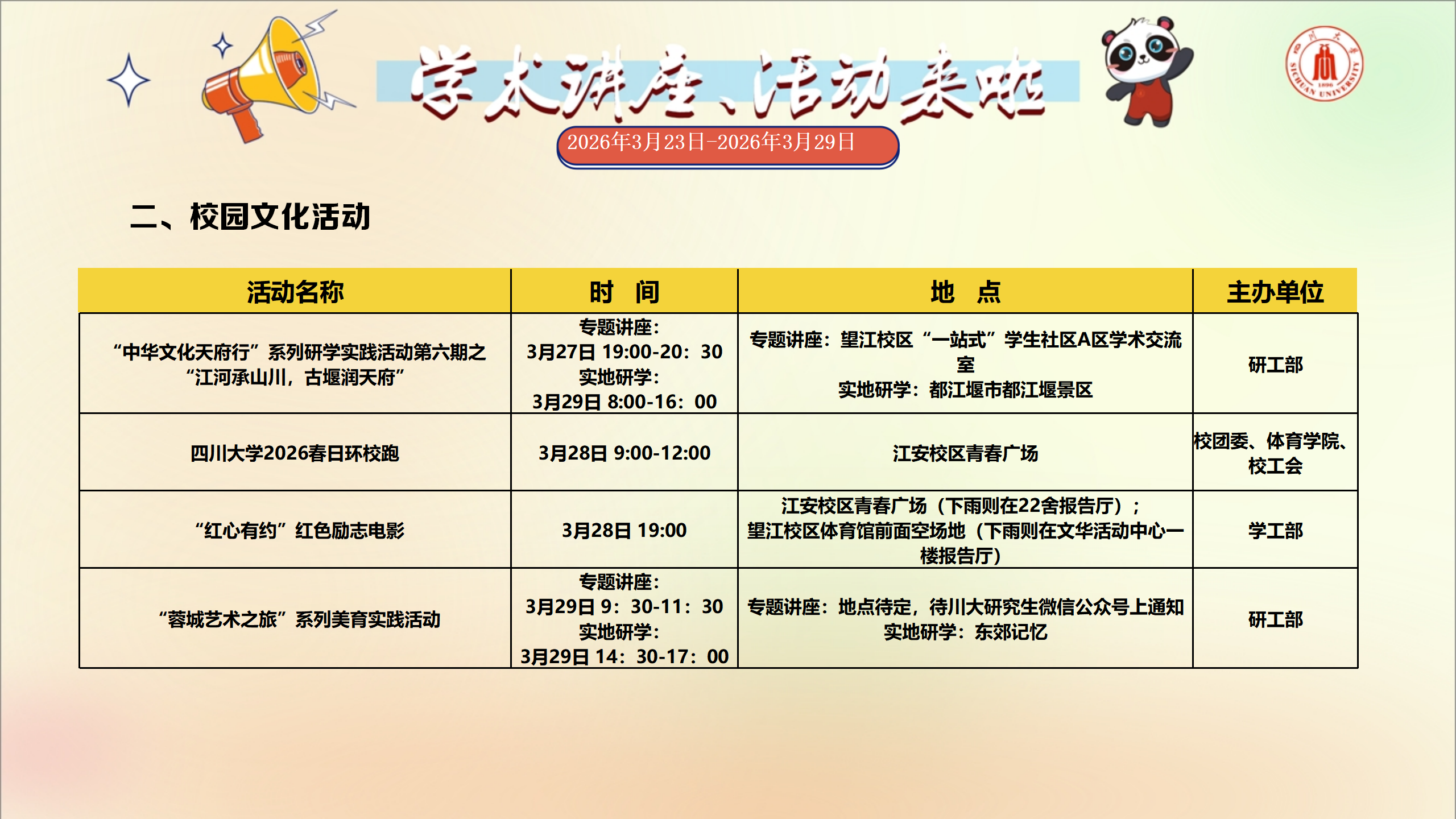 学术讲座与91黑料 活动预告(2026年3月23日-2026年3月29日)