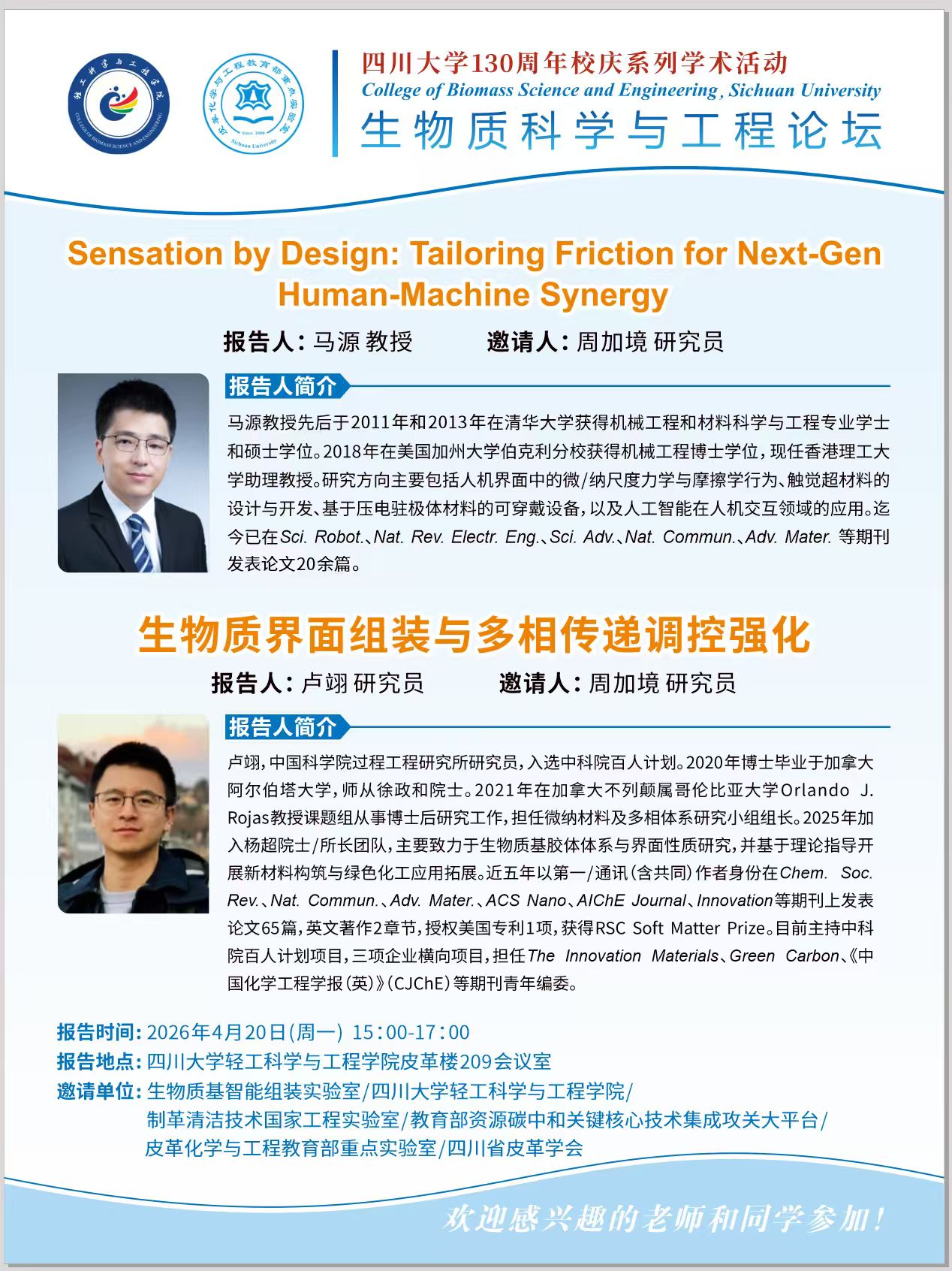 生物质科学与工程论坛:马源教授、卢翊研究员 学术报告